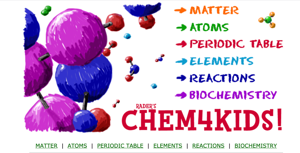Consulted Chem4Kids as the primary content source for Chemistry information. Narrowed down the key topics to the following: